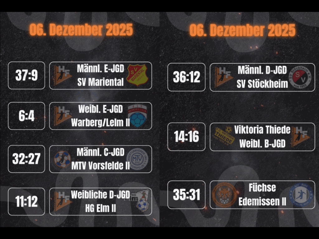 Auch unsere weibliche E-Jugend konnte gegen den HSV Warberg/Lelm II am Wochenende einen Sieg feiern. In der torarmen Partie gingen unsere Mädels nach 5 Minuten mit 1:0 in Führung. Danach passierte nicht mehr viel im ersten Durchgang, zur Halbzeit stand es 2:1 für uns. Nach Wiederanpfiff wurde dementsprechend schon die Vorentscheidung gefällt, als unsere Mädels mit 4:1 in Führung gingen. Dieser Vorsprung war genug, um am Ende verdient mit 6:4 zu gewinnen. Die Vorrunde ist aber nicht nicht vorbei, am Mittwoch kommt es um 18:00 Uhr zum Nachholspiel gegen die 1. Mannschaft von Warberg/Lelm.