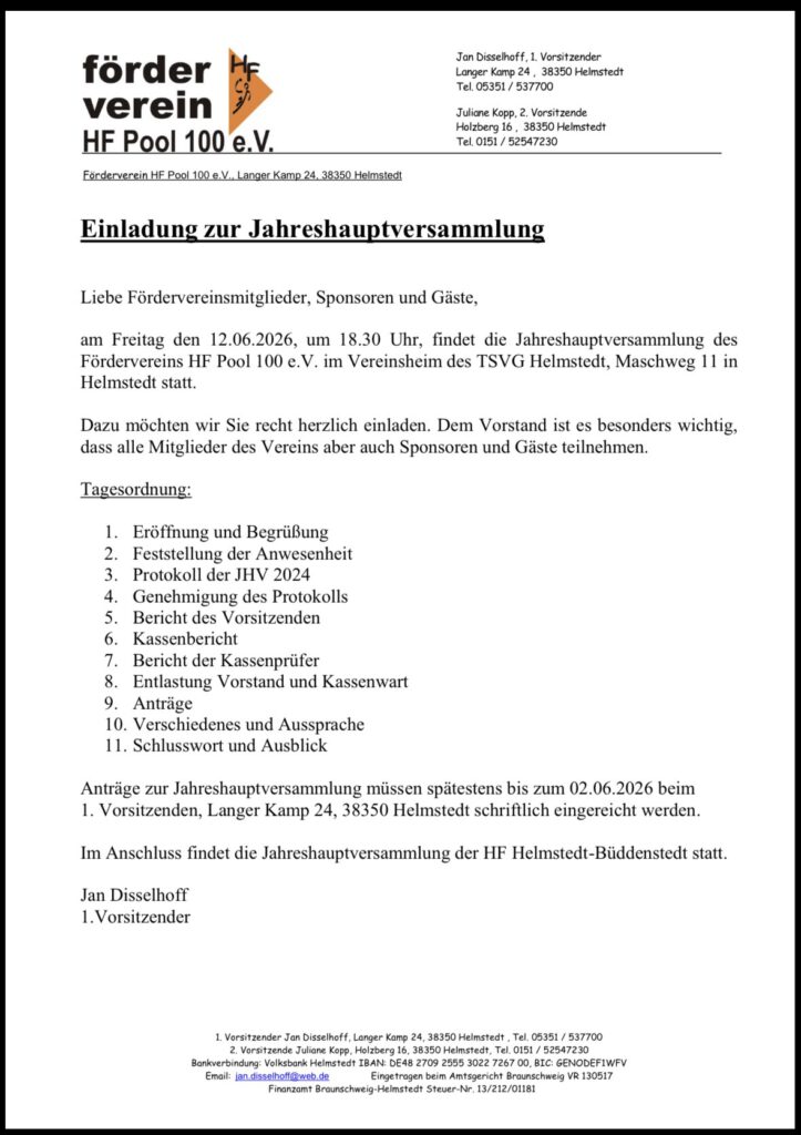 Jahreshauptversammlung HF am 12.06.