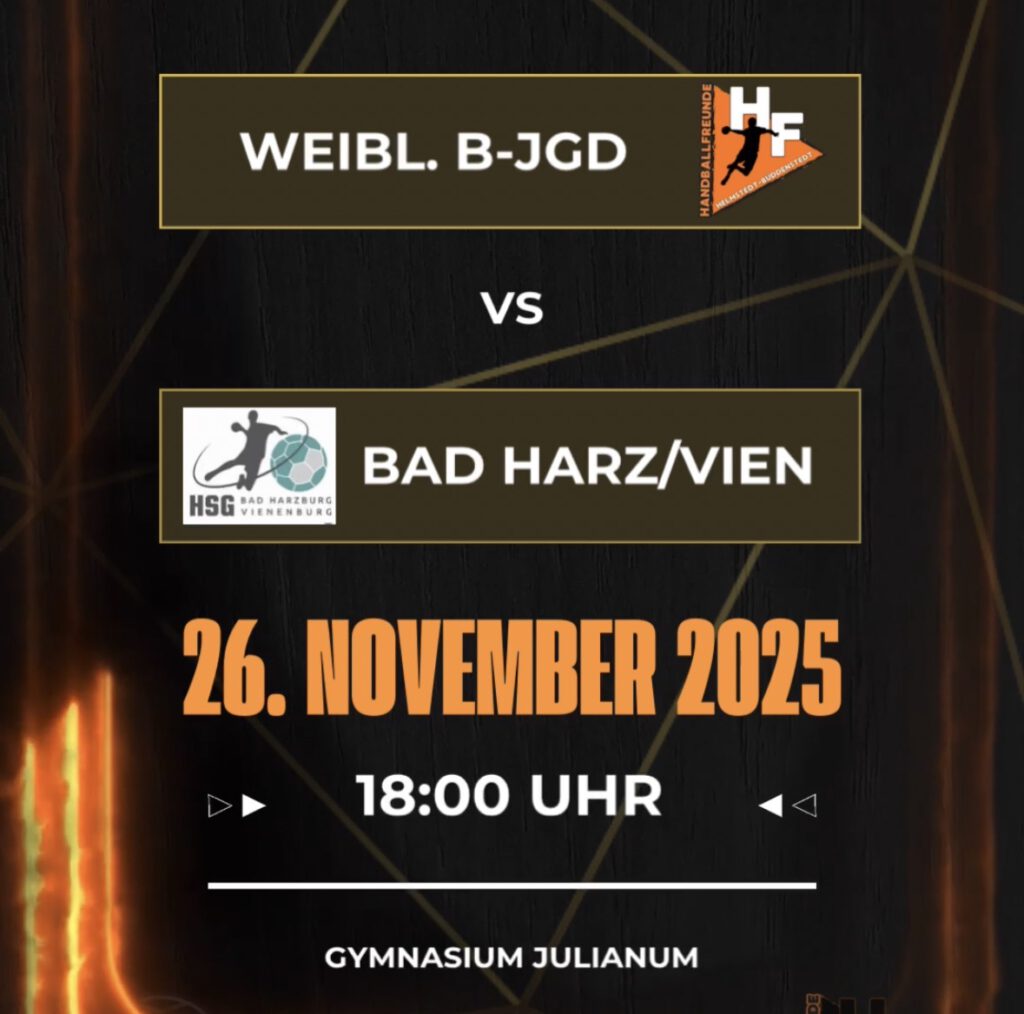 Nur wenig Zeit für unsere weibliche B-Jugend, um das Spiel vom Wochenende abzuhaken – das kann aber natürlich auch ganz gut sein. Denn schon am Mittwoch geht es im Nachholspiel gegen die HSG Bad Harzburg/Vienenburg wieder auf die Platte. Die HSG hatte zuletzt krankheitsbedingte Spielausfälle und war das letzte Mal am 08.11. aktiv. Insgesamt gab es für die Gästinnen (Platz 6) in dieser Saison erst einen Sieg bei drei Niederlagen, unsere Mädels stehen mit einem ausgeglichenen Punktekonto von 2:2 auf Platz 4. Wir können sicherlich eine enge Partie erwarten, die um 18:00 Uhr in der Julianum Halle angepfiffen wird.